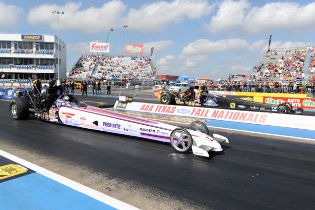 ”It’s all cyclical,” said Schumacher, who is the winningest Top Fuel driver at Texas Motorplex with six event titles. “Kalitta cars have gone fast, the Force car has gone fast, and right now, we’re running extremely well. Antron has been running great all year long. We’re all a team here [at DSR] and help each other, but it doesn’t look like Antron’s team needs any help. If he’s going to be the champ this year, he’s certainly earned it.”