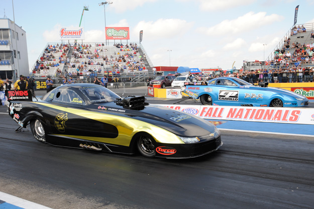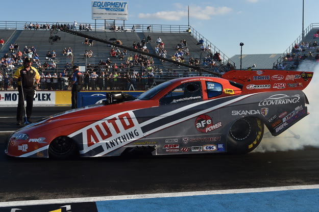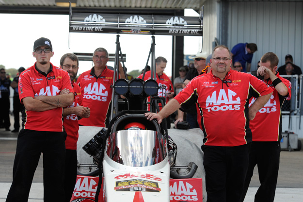 With a sterling performance in qualifying with his Brian Corradi- and Mark Oswald-tuned Matco Tools dragster, points leader Antron Brown stretched his incoming lead over second-place Doug Kalitta from 77 to 90 points, giving him an extra round’s cushion.