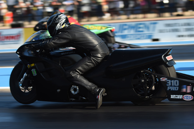 “We’ve been working hard for that,” said Gladstone, who goes up against Andrew Hines in the first round. “I can’t thank the bike owner, Joe Riccardi, enough for keeping faith in me and just keep letting me go out there and make passes and Gary Stoffer and Greg Underdahl — you’re the man; thank you for your advice. Man, I’m just so happy right now. That’s better than winning the race. That’s what we wanted to do. We knew the bike made power. Vance & Hines gave us a great motor. Eddie Krawiec, thank you for mentoring me, and thank you to my sponsors.”