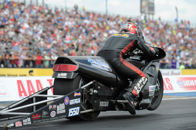 “I don’t know if I’m more excited about being No. 1 than winning a race because I’ve been getting bumped around all season. Friday night we come into the [pressroom] and are speaking to you guys, but then on Saturday, they just come on around us,” said Savoie. “If I have to remember any race in my entire life, other than my first win because there will never be another one, this race last year was the most amazing day of racing on a Pro Stock Bike that I could ever imagine. It was unbelievable. The bike was good, I was good, Tim [Kulungian, crew chief] was good, the whole team was clicking, and it takes a team effort to do all of this. I will never forget that. After the showing here last year, hopefully we can repeat it and have some fun.”