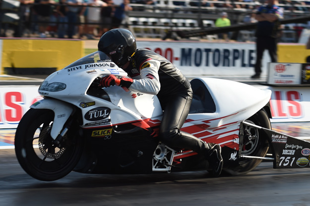 After what could only be described as a disastrous outing in Reading, where an oil leak prevented him from making a run in the lone qualifying session, resulting in a DNQ, things appeared to be getting back on track for Steve Johnson here yesterday after runs of 6.95 and 6.88. However, though that 6.88 was good enough to place Johnson 10th, the run wasn’t without challenges, and that left Johnson feeling as if he maybe had a black cloud following him.