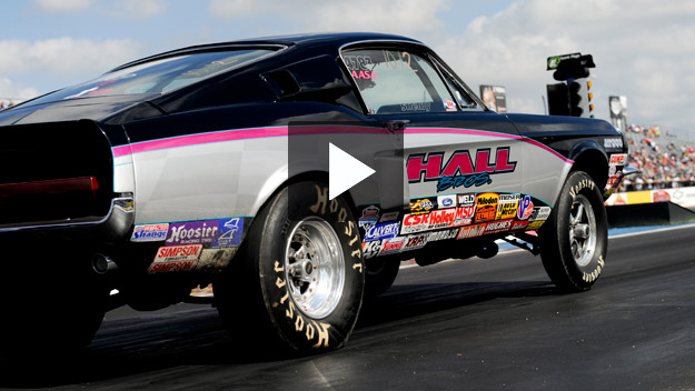 Stock winner Rusty Hall fulfilled a longtime goal by finally winning a national event in his home state of Texas. Hall, whose three previous victories include an Indy title in 2002, won a classic Ford vs. Chevy muscle car battle when he drove his ’67 Shelby GT500 Mustang to a win over Bobby Brannon’s big-block ’69 Camaro. Hall won with a 10.218 on his 10.20 dial after Brannon broke out. Interestingly, Hall was driving the same car that longtime family friend Charlie Ford drove to the Dallas Stock title in 1987. [Watch video]