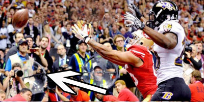 Capps (arrow) previously held a parabolic microphone for a San Francisco radio station on the sidelines during the 2013 Super Bowl.