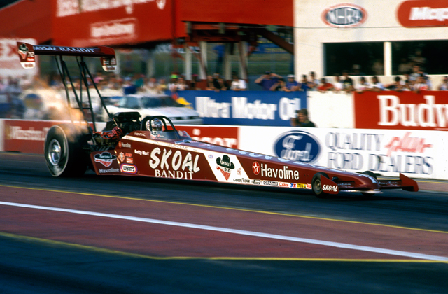 Prudhomme wrapped up his career driving the Skoal Bandit entries. The first Skoal Bandit was a Funny Car (above), which Prudhomme drove from 1987 through 1989. Prudhomme then returned to his dragster roots in 1990, piloting a Skoal Bandit Top Fueler (below). He remained in that car through the 1994 season when he retired.