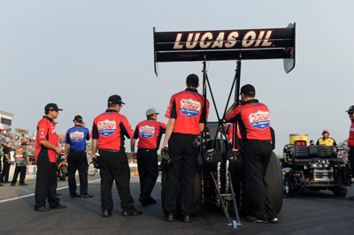 Though Crampton doesn’t benefit from being part of a multicar team at every event on the NHRA Mello Yello Drag Racing Series tour, he is joined by Lucas on a limited schedule. Lucas has taken advantage on many of those opportunities with two wins in 2014 and a victory at Indy in 2015.