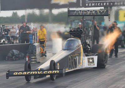 Eight-time world champion Tony Schumacher recorded the fourth quickest time with a 3.743 at 322.50 in his U.S. Army dragster. Schumacher is a nine-time Chevrolet Performance U.S. Nationals winner and is currently fifth in points.