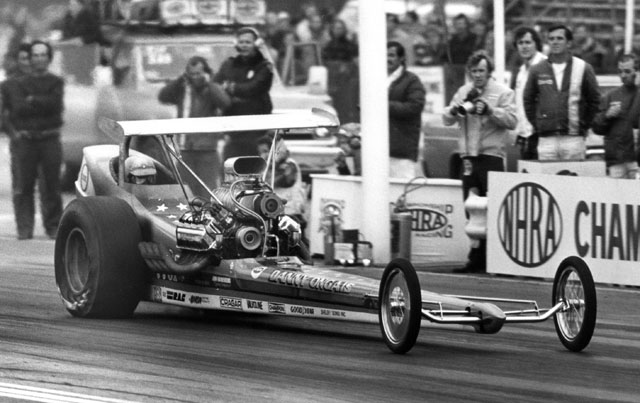 Funny Car was contested at three events during the 1969 season, and Ongais was standing in the winner’s circle at two of those. After besting Tom McEwen at the Springnationals, Ongais outlasted Rich Siroonian to win the Nationals in Indy, where NHRA founder Wally Parks presented him the trophy.