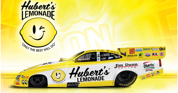 “This summer, we ought to be filming a sequel to the movie Funny Car Summer because we are all having so much fun with great sponsors like Hubert’s Lemonade and Menards,” he said. “It’s not hard to have fun with a sponsor that has a smiling lemon as its logo.”