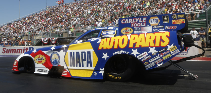The Don Schumacher Racing team has won the last six Funny Car events and boasted 11 of 12 finalists in that span. To get to that point in a highly competitive category, the teams have benefited from each other’s strengths to push the whole wagon forward. Jimmy Prock and John Medlen on the Infinite Hero team are regarded as the modern-day Wright brothers, bringing new concepts into reality on the racetrack. Dickie Venables on the Mopar/Rocky Boots team is a fearless competitor who will squeeze the most out of his hot rod. Tobler on the NAPA team and former protégé John Collins on the Make-A-Wish car are methodical racers who aren’t likely to let a fast tune-up out of their grasp until it’s time to move on to the next step.