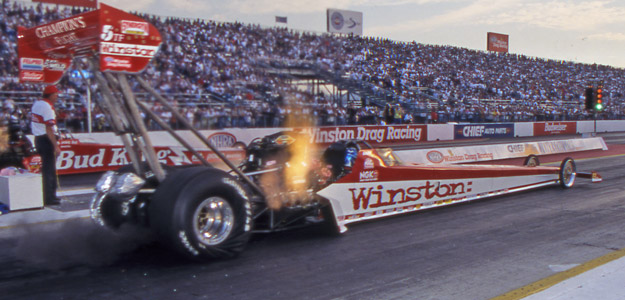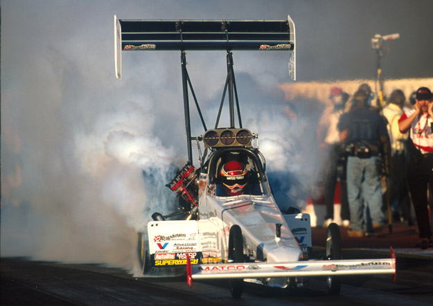 Russell, like Gary Scelzi four years earlier, won in his Top Fuel debut at the Winternationals and with no less big of shoes to fill as the driver for legendary fuel dragster pilot Joe Amato, who retired at the end of the 2000 campaign. Like Scelzi, Russell was an accomplished driver in the alcohol ranks, with seven Top Alcohol Dragster wins to his credit, including the 1997 U.S. Nationals, and four divisional championships. After qualifying in the field in the No. 9 position, Russell drove Amato’s Valvoline/Keystone dragster past Andrew Cowin, low qualifier Doug Kalitta, and Bobby Baldwin to get to the final round. In the final, Mike Dunn lost traction at the 100-foot mark in Darrell Gwynn’s N.Y. Yankees dragster while Russell powered down the less-favored left lane to victory.