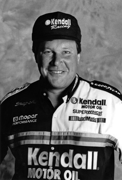 After Yingst’s untimely passing due to a brain aneurysm at the Houston event in 1993, Tim and Kim Richards went to work for Etchells on the Kendall Motor Oil Dodge Daytona in a season full of notable accomplishments. Etchells made NHRA history by becoming the first Funny Car driver to record a four-second elapsed time with a 4.987 e.t. during Friday qualifying at Heartland Park Topeka. He earned the prestige and the $25,000 reward that was put up by Force sponsor Castrol. Etchells was runner-up to Force for the championship that season despite operating on a shoestring budget that Richards estimated at $260,000 and running parts purchased mainly from Joe Amato.