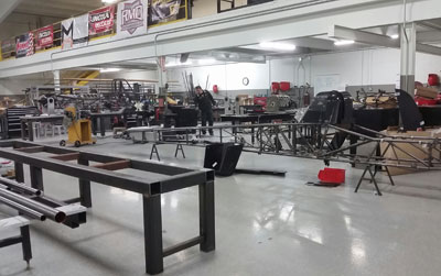 The Bounty Hunter Chassis and Fabrication Shop has also been staying busy this off season! The Chassis Shop crew has been building a new Bounty Hunter chassis for Doug and the Mac Tools team. This specific chassis is pretty special because it is only the second top fuel chassis to come out of the Bounty Hunter Chassis Shop, and it is the very first chassis to be built on our brand new jig fixture! Once all of the fixtures (tubing, etc.) have been completed and perfected, it takes approximately two weeks to build a top fuel or funny car chassis from scratch. When it’s time for one of the dragsters or funny cars to get front halved, it takes about two days because of the way we have everything set up. One day is dedicated to building the new front half, and then it takes a day to attach the new front half to the chassis.