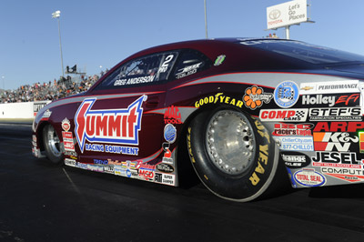 Anderson entered this year’s race-within-a-race as the No. 1 qualifier thanks to his strong qualifying showing over the past year, and that pitted him against longtime rival Jeg Coughlin Jr., the fan-vote winner, in the first round. Anderson left the starting line first and outran Coughlin, 6.69 to 6.80, to advance. Anderson then clocked a 6.74 to easily defeat Chris McGaha, who shook the tires early, in the semifinals.