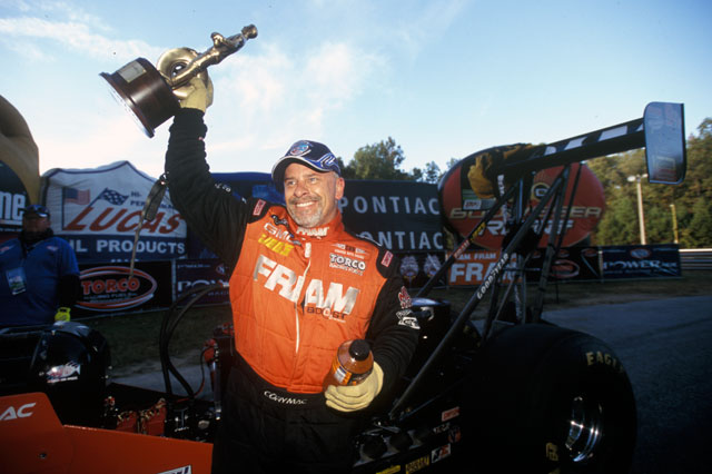 Like Capps and Johnson, McClenathan finished second in the standings four times during his Top Fuel career, the most memorable of which is 1992 when he finished less than 100 points behind Joe Amato after skipping the Montreal event. Under the points system at that time, McClenathan would have earned 100 points for showing up and making a pass at that event. Though he didn’t collect a championship trophy, McClenathan did earn 34 race Wallys, which places him eighth all-time in Top Fuel.