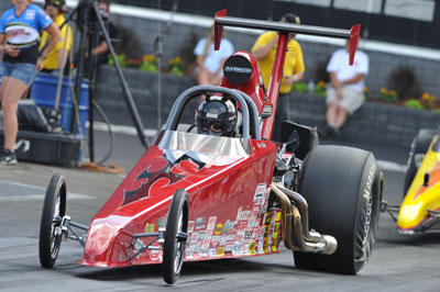 Run of the event: At least a half-dozen female drivers were in the 32-car Top Dragster field, but none was quicker than Shanna Snyder. The sister of former Top Alcohol Funny Car racer Mick, Shanna drove Troy Stone’s colorful Vintage Trailers dragster to an impressive 6.02 at more than 235 mph to take the top spot in the class. Snyder’s supercharged dragster is capable of running in the five-second zone, but it is detuned slightly because Top Dragster competitors are limited to 6.00 seconds.
