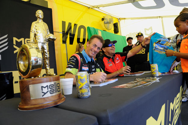 One popular draw in the pits at each event is the Mello Yello Powerhouse, which in addition to having a Funny Car simulator, Mello Yello tastings, and more, hosts autograph sessions each race. Today’s well-attended session featured a number of drivers, including Top Fuel runner Clay Millican and former Funny Car champ Cruz Pedregon.