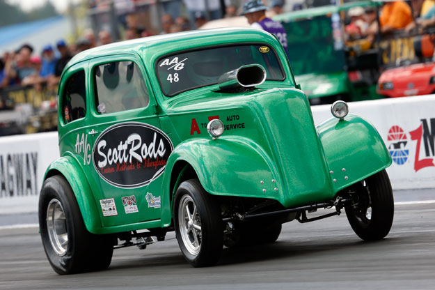 Fans got a blast from the past after each NHRA Mello Yello Drag Racing Series qualifying session today when AA/Gassers took to the track for a series of exhibition runs. Times varied among the entries with the quickest times in the mid-five-second range.