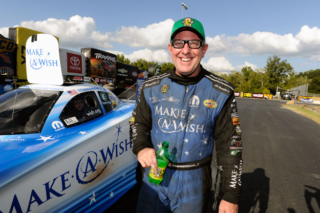 Dave Richards, who collected his second career round-win last time out in Indy, and his team are racing with a purpose this weekend, and if you look closely at his Funny Car, you will notice decals that give a clue at what has them motivated to do well here in Charlotte, the site of his first ever round-win, in 2014.