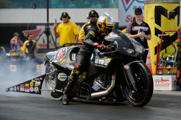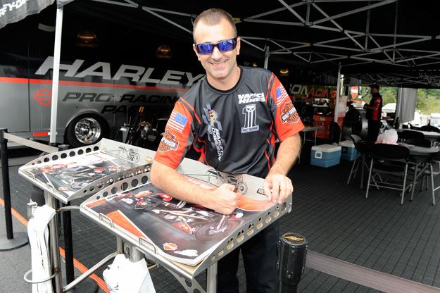 Krawiec will face Karen Stoffer’s Suzuki in round one, and there is a distinct possibility that he could face off with teammate Andrew Hines in the semifinals because the two Harley-Davidson V-Rods are on the same side of the ladder.