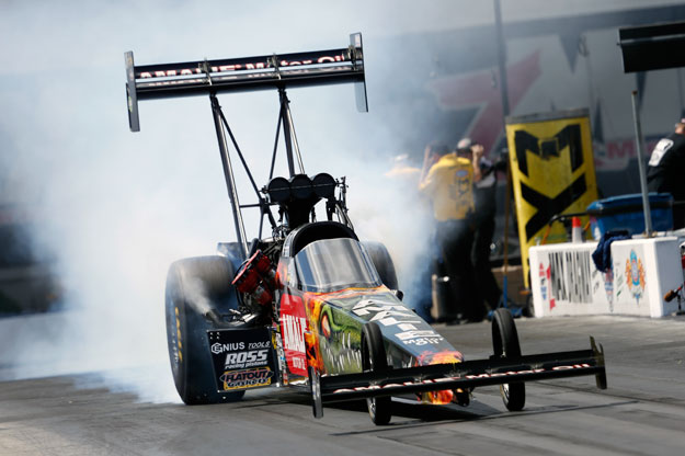 After a strong opening day, in which he collected four qualifying bonus points and grabbed the provisional No. 1, Doug Kalitta had another great outing today, clocking a pair of 3.77s, including one that was the second-best time of the final session. Though leader Antron Brown was able to also earn some bonus points today, Kalitta’s efforts allowed him to take a bite out of Brown’s lead, which is now at 22 points entering race day.