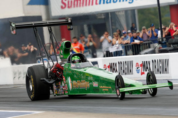 Rich McPhillips kept his slim national title hopes alive when he bested Robin Samsel in the second round of Top Alcohol Dragster eliminations. McPhillips, who advanced to the final but lost to Shawn Cowie, is still a long shot for the crown, needing to win his remaining races and hope points leader Joey Severance does not improve on his score of 765 points.