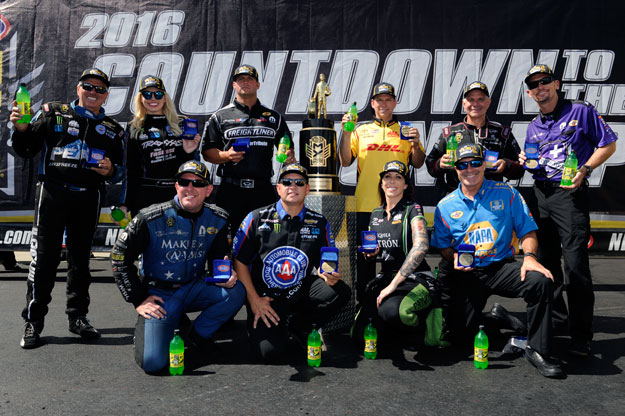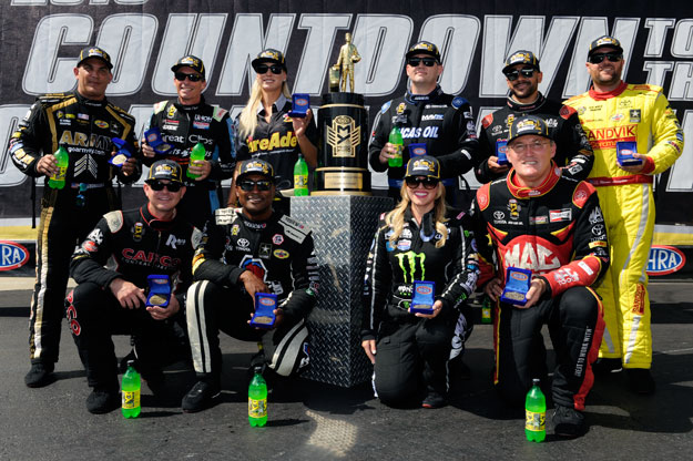 The 10 drivers who will compete for the 2016 NHRA Mello Yello Pro Stock title gathered before Sunday's opening round of eliminations at zMAX Dragway. This year's Countdown field includes five former champions.
