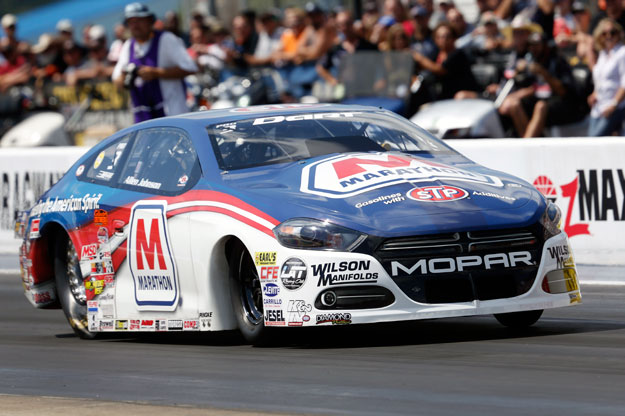 Denver winner Allen Johnson, who also enjoyed a strong run at Indy with a runner-up finish to Chris McGaha, suffered a rare round-one loss in Charlotte. The Marathon Petroleum team suffered a setback when they wounded an engine late in qualifying and never recovered. In round one, Johnson’s 6.703 fell to Jeg Coughlin Jr.’s 6.687.