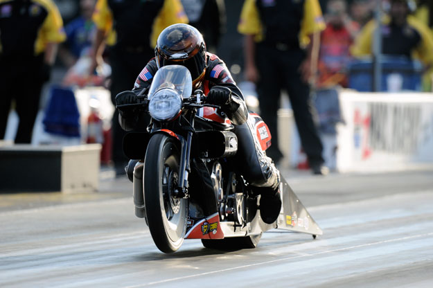 Andrew Hines has won five events this season and finished the regular season as the top seed in Pro Stock Motorcycle, but a deeper look at the Screamin’ Eagle Harley rider’s season reveals that he has rarely had the best bike in the field. Hines clearly did not have the best bike in Charlotte during qualifying, where he was just sixth-quickest. Hines also struggled in eliminations, including his narrow 6.921 to 6.926 victory over Steve Johnson in round two.