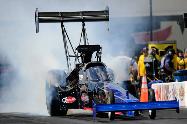 After pedaling his way to a win in the first round, Steve Torrence’s weekend came to a tough end when a mechanical malfunction caused his car to shut off when he was ahead of Wayne Newby in the second round. That allowed Newby, who paired a .046 light with a 3.849, to beat Torrence’s slightly quicker 3.843. It capped what was a frustrating weekend overall for Torrence, who had one of the steadier cars through the regular season but had two tire-smoking runs in qualifying and two less-than-perfect passes in eliminations.