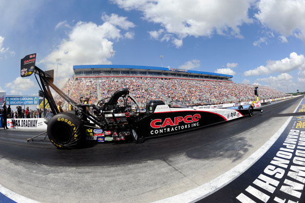 “I’m going through the traps and boom, a body panel flies off,” said Pritchett, who lost in the next round to Doug Kalitta but moved up two spots in the points to eighth. “That happens, and then the next thing I look for is the win light, and I’m like, ‘It doesn’t matter because I’ve got a badass crew. We’re going to fix this, and we’re going to go onto round two.’ ”