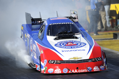Robert Hight, the 2009 Funny Car world champion, sped to his quickest run during the test with a 3.885 at 329.34 in his Auto Club Chevrolet Camaro. He narrowly clipped teammate Courtney Force for the second-quickest run of the day, as she posted a 3.890 at 323.89 at the controls of her 10,000-horsepower Traxxas Camaro. In fact, John Force Racing cars claimed seven of the 10 quickest runs of the day as 16-time world champ John Force led the parade with runs of 3.914, 3.927 and 3.930 in his baby-blue Peak Camaro. Courtney also ran a 3.915 at 323.74, and Hight added a 3.931 at 323.43.