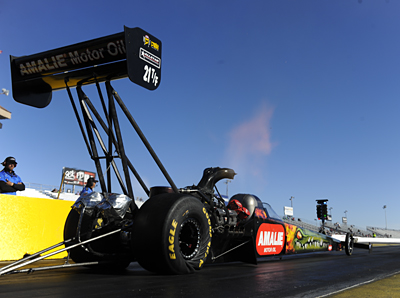 Better position: There have been many changes with Terry McMillen’s Amalie Motor Oil dragster this past winter, from the car itself to the parts within it. The team has worked with Don Schumacher Racing and Todd Okuhara, DSR’s director of nitro racing, to acquire many of the same parts and pieces that are used by the Top Fuel teams within that organization. Crew chief Rob Wendland is bullish about the early results.