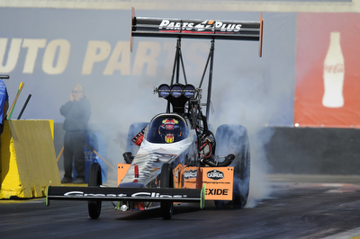 Doug Kalitta was third-quickest of the day in his Mac Tools dragster with a 3.745 at 325.53. Aussie Richie Crampton posted a 3.748 at 319.22 in the Lucas Oil dragster, and defending world champ Antron Brown led the DSR dragster charge with a 3.768 at 297.88 in his Matco Tools dragster.