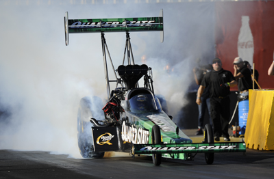 “This was truly a test session with different parts on our car on every run except for one yesterday,” said Millican. “[Crew chief] David Grubnic’s plan was to run the car to the eighth-mile on every pass, but we decided to make a full run when we were in the staging lanes and saw that the conditions were the same as yesterday. We called [owner] Doug Stringer, and he gave us the OK to make a hero run. It was going the quickest that I’ve ever been until it broke a blower belt that had too many runs on it. It was an unbelievably great run. The best part is that we didn’t hurt a part all week.”