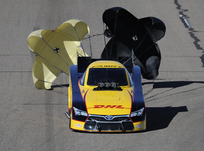Other notable runs in Funny Car from the day included a 3.919 at 320.66 from Ron Capps in the NAPA Auto Parts Dodge Charger and a 3.962 at 326.79 from two-time world champ Hagan in the Mopar Dodge. Past Phoenix winner Alexis DeJoria was the quickest of the Kalitta Funny Cars with a 3.972 at 320.51 in her Tequila Patron Toyota Camry, followed by defending Funny Car world champ Del Worsham with a 3.983 at 320.81 in his DHL Camry.