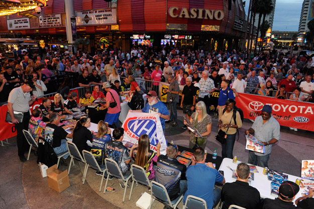 As is the case every year, the event weekend kicked off with the NHRA Fan Fest on Freemont Street, which was again a huge success, drawing large crowds of fans. The event featured many of the top stars from the NHRA Mello Yello Drag Racing Series, including John Force Racing drivers Robert Hight, Brittany Force, and John Force.