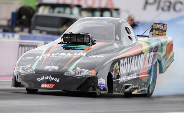 Leah Pritchett broke the incoming track record of 3.722 with a stout 3.705 from her Pennzoil machine early in the second qualifying session, recovering nicely from a tire-smoking first effort to hold the hot hand heading into Saturday’s final two qualifying sessions.