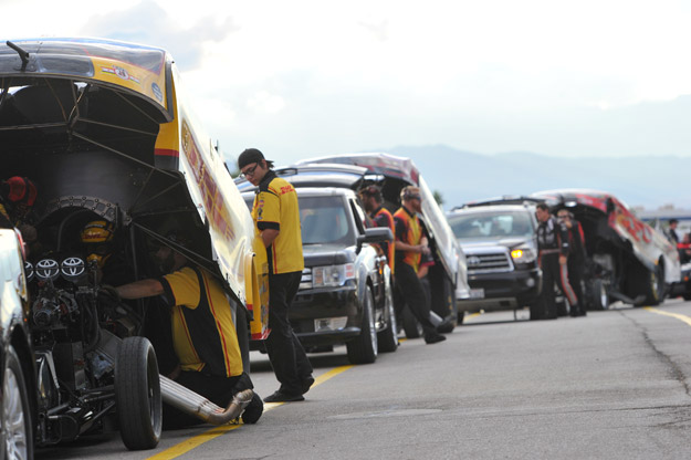 “Tomorrow, who knows? We run after dragsters, but today was cool because we had cloud cover and the track was tight. We’ll come out and fight hard again and scoop up as much as we can. We have nothing to lose right now, so you swing hard and hopefully you connect. It’s a battle out there.”