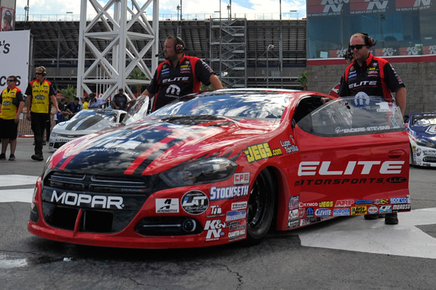 Matt Hagan’s Mopar Charger had the best run of both of Friday’s qualifying sessions, giving him six points and cutting his deficit to points leader Ron Capps – who earned two on the day – to 85 points, and with two sessions to go and bonus and position points still available, he’s looking forward to getting Capps lead down to less than 80 to cut a round off of his lead.