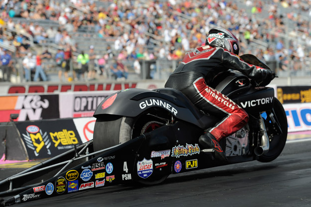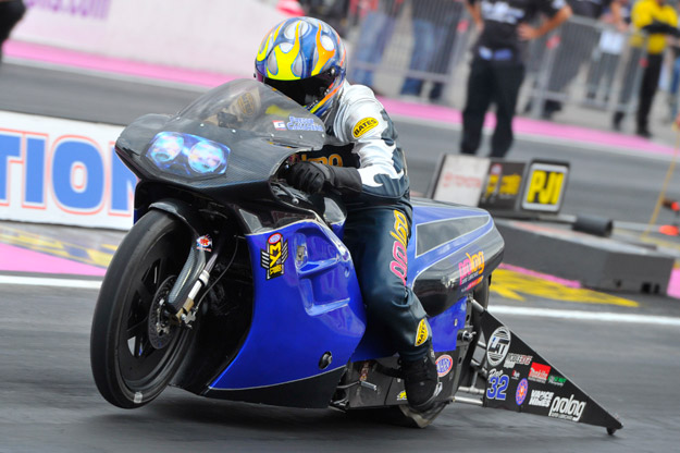 Jerry Savoie gained a little ground on the two Harleys when he dominated the opening day, including posting a strong 6.90 in the opening session that gives him the provisional No. 1 spot in Pro Stock Motorcycle. Savoie was also the quickest of Q2 with a 6.92. The next-best run of the day was a 6.94 by points leader Eddie Krawiec.
