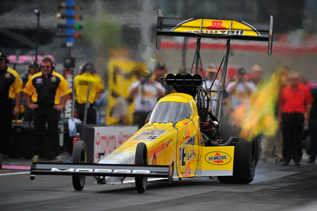 You could excuse Top Fuel fans whose tenure extends back into the 1980s for shedding some non-nitro-induced tears when Leah Pritchett pulled her Don Schumacher Racing dragster to the starting line for her first run Friday. Pritchett, who has driven with more liveries this year than any driver in recent memory, was sporting bright yellow Pennzoil color reminiscent of former Top Fuel champ Eddie Hill’s "nuclear banana" Pennzoil dragster.