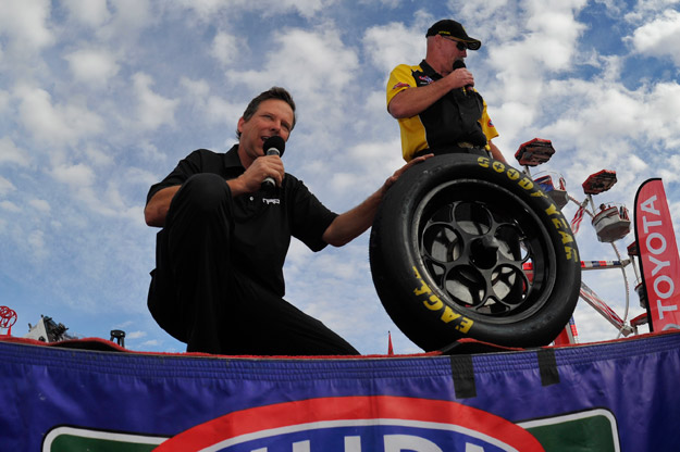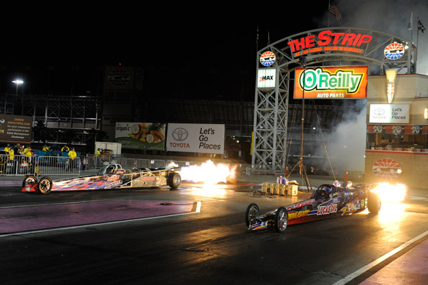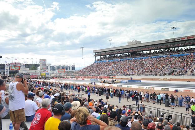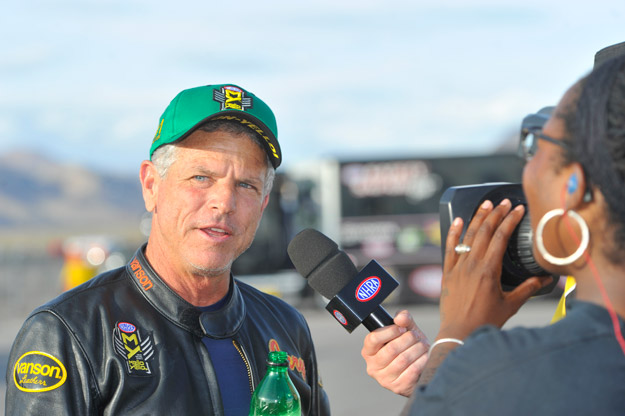 The run cost him a chance to be backstage at the Elton John concert at Caesars Palace on Las Vegas’ other “strip,” but Clay Millican, who is friends with drummer Nigel Olsson, a huge drag racing fan, insists he was happier to be standing in the spotlight in the media center rather than backstage with the celebrated singer.