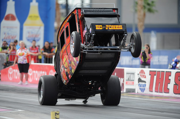 Wheelstanding legend Ed “the Outlaw” Jones made his semi-annual trek out to the event to entertain the fans between rounds with his famed Jelly Belly Candyland Stage. Jones and his wife, Wendy, have been campaigning the venerable stagecoach replica for 40 years.