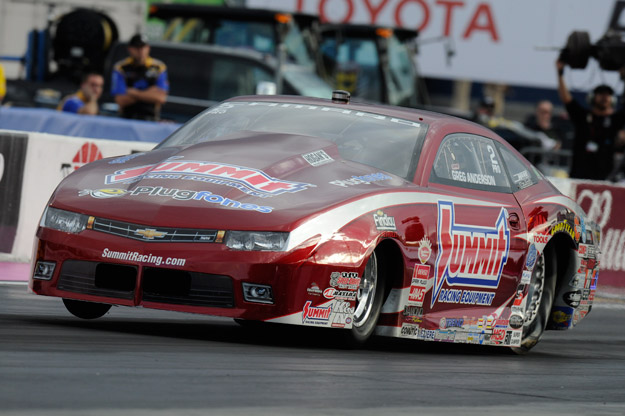 After a relatively quiet Friday, the Summit Racing team rallied on Saturday, led by Greg Anderson, who had the quickest times of both Saturday sessions. Anderson posted a best of 6.677 to claim the top qualifying spot.