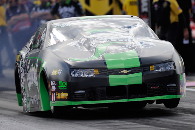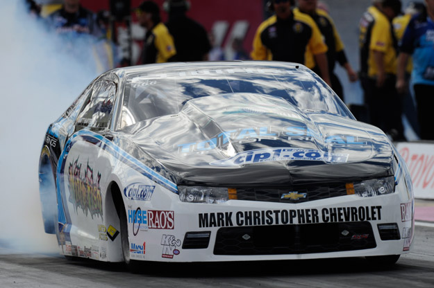 “We had an interesting qualifying outing,” he explained. “We threw a six-disc clutch in for the first qualifying session, but it didn’t run well. We put our five-disc clutch back in, and on that run, the computer data showed the early numbers were better than they were on that 3.87, but mounts that hold the clutch timer box broke, it pulled back, disconnected the wires and shut the car off. We came into today not qualified, but it was overcast so we felt we would be OK. Then there was a huge oildown, the sun came out, and the track temperature went up 10 degrees. We backed it down and ran a 3.94 so we were in and I didn’t feel any pressure coming into the last run, but it was pretty gratifying to leave here today with the green hat [symbolic of the low qualifier].