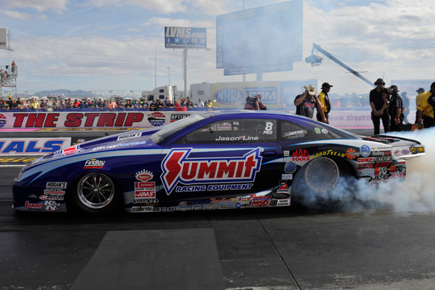 Though they finished the day in the No. 3 and 5 positions, the Summit Racing duo of Jason Line (pictured) and Greg Anderson weren’t 100 percent happy with their performance on Friday.
