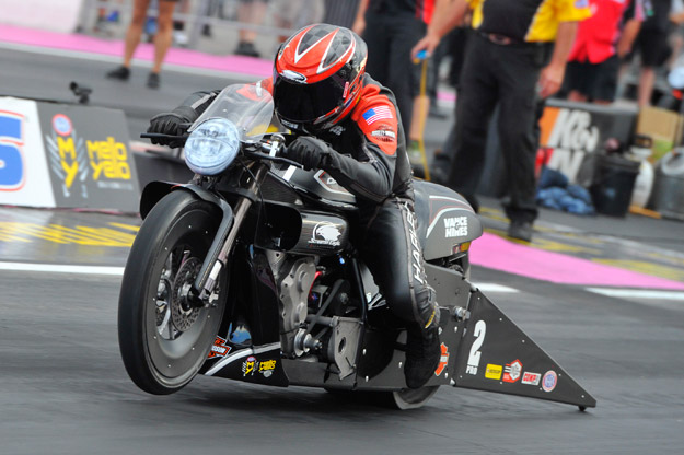 “We have everything it takes to run with him,” said Krawiec. “He’s going 1.04, 1.05 60-foot. We’re going 1.07. For us, that’s what we’re working on now. We feel we have a really good tune-up. I ran top speed second session, so it shows the tune-ups are right. I have No. 1 in back-halves. When you’re doing that, and you’re not at the top, you’re missing it early. For us, really what we’re focusing on is getting both of our motorcycles off the starting line. It’s nice to have two bikes that are running identical with each other. We’re going to pick away at the front half here and see what we can do these two sessions. All in all, I think we can run with him neck and neck or possibly even nip it just a little bit. Right now, it’s going to take quite a bit to go a 6.88, 6.89. We’re going to have to go 1.04 or 1.05 to get there. I’m not saying we can’t get there, but I don’t know if we can get there.”