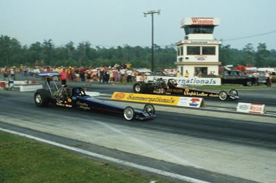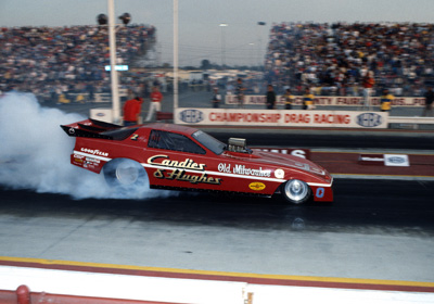 Sponsorship opportunities lured Oswald and the team to the Funny Car ranks in 1983. He became the second driver in NHRA history after Don “the Snake” Prudhomme to have wins in both Top Fuel and Funny Car when he won in Montreal. The following season, he topped the likes of Billy Meyer, Kenny Bernstein, Frank Hawley, and Raymond Beadle to win the 1984 Funny Car championship (pictured, bottom right).