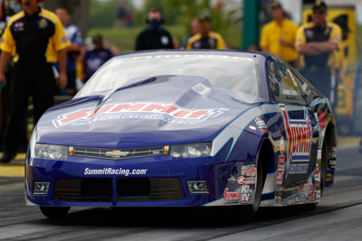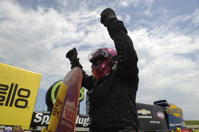 He made up for lost time by sweeping the table with a No. 1 qualifying position, low e.t., top speed, and the victory. He called the 6.578-second pass that he made Friday one of the best runs he has made in the fuel-injection era when factored for the weather conditions. Line joked about not knowing where to find the pressroom Friday because he had never performed well enough there to merit an interview, and he ended the weekend referencing the facility as his new favorite track.