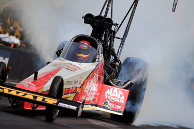Doug Kalitta achieved a personal milestone by winning three consecutive events for the first time. His performance behind the wheel of the Mac Tools dragster was the deciding factor in all three final rounds. Though Kalitta is far too modest to boast about his driving prowess, crew chief Jim Oberhofer has stated that Kalitta is one of the greatest Top Fuel drivers of all time.In Houston and Atlanta, both wins were sealed by holeshot victories against respective final-round opponents Steve Torrence and J.R. Todd. Kalitta scored the 11th victory for Kalitta Motorsports at Heartland Park Topeka by defeating Antron Brown in a wild pedalfest. The 1994 USAC Sprint Car champion relied on some of his experience as he pedaled his dragster six or seven times, once in a sideways slide that ripped a side panel off the side of the dragster, to reach the finish line before Brown.